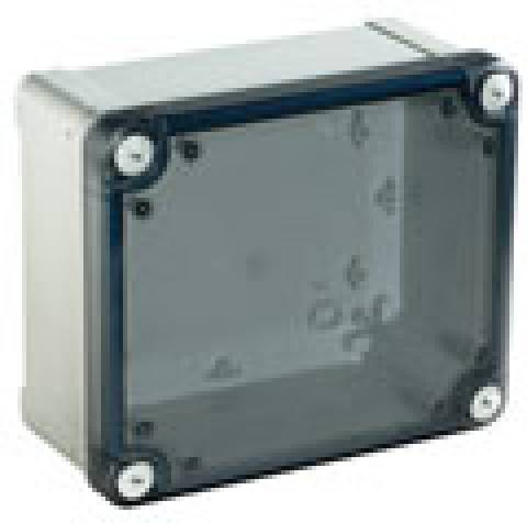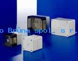 Skříňka a kryt v šedé barvě z polykarbonátu (provedení .000), zesíleného skelnými vlákny, kryt průhledné (provedení .100) z polykarbonátu, šrouby krytu z ...